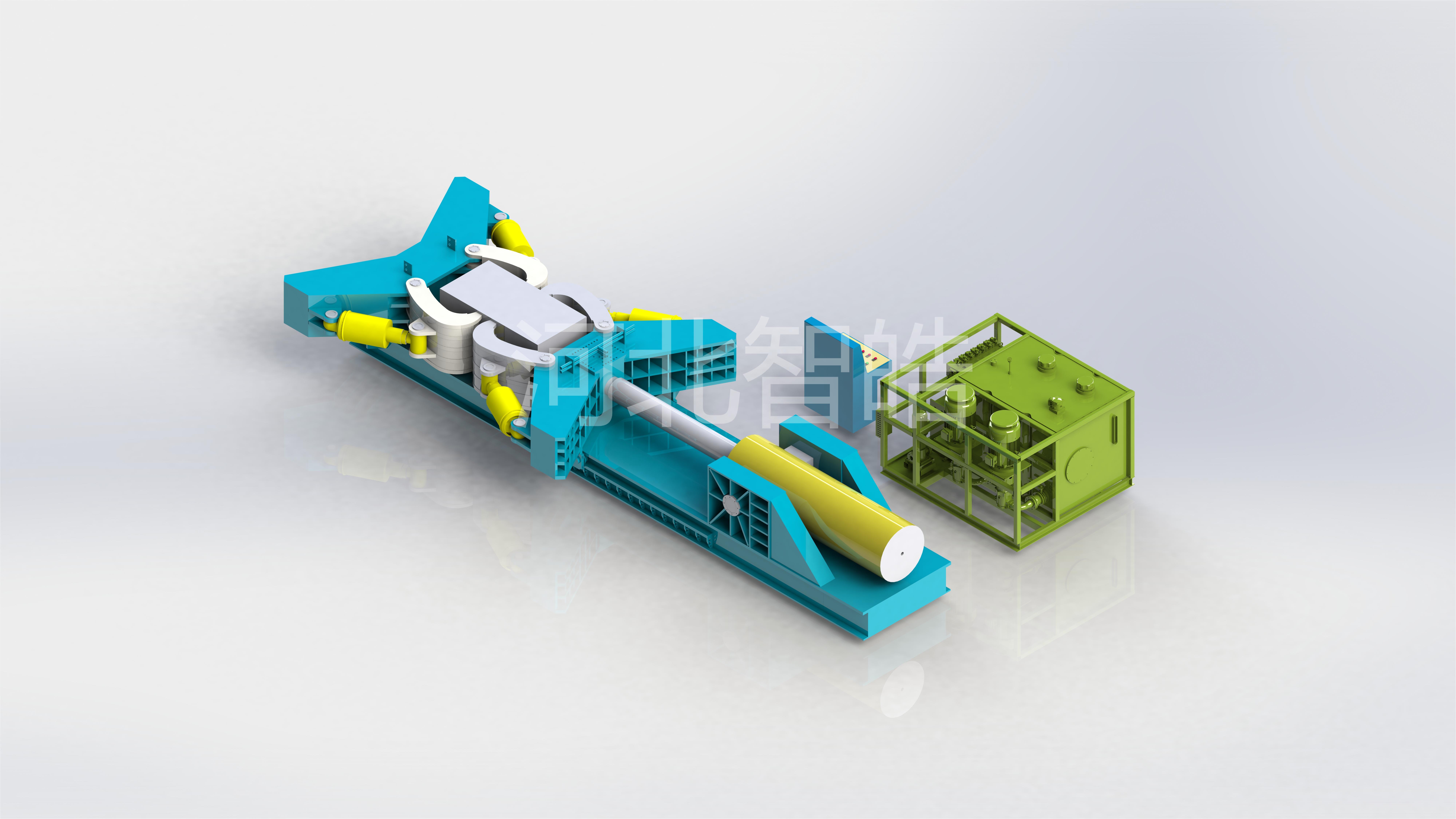 金属拆包机是通过液压柱塞泵向集成油路供油,经过分配手动阀向液压缸传送后,产生动力。压力可以根据实际不同情况调到需要的额定值(额定值大小由压力表显示)。金属拆包机通过液压机械手抓挤压分离,并通过多次分解,从而拆解包块。