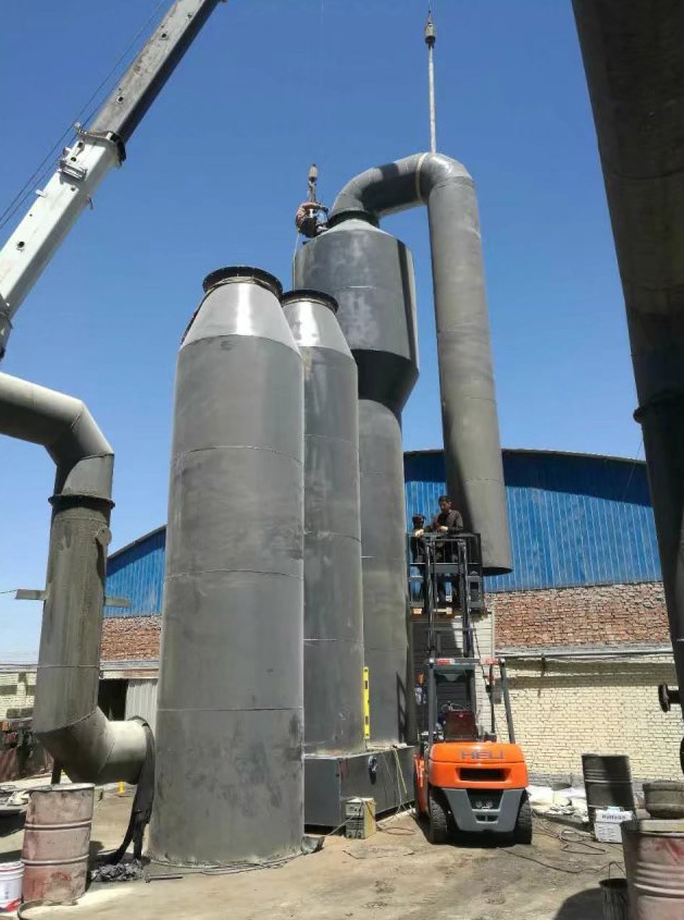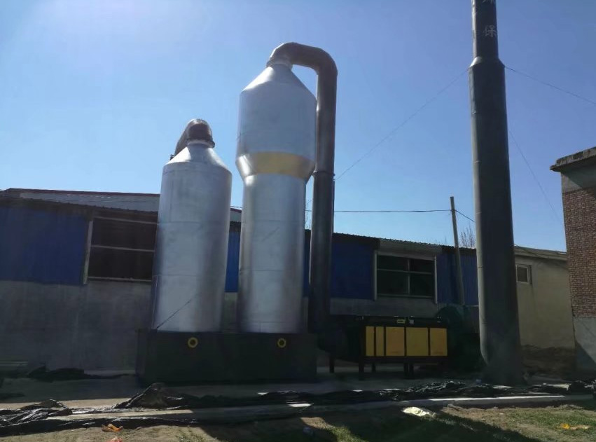 一般喷淋塔(吸收塔、净化塔)搭配活性炭箱等,形成多级多设备处理,使工业废气达到一个好的处理方案。