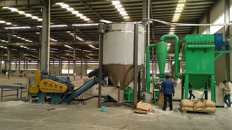 我公司是一家专业的磨粉设备厂家,结合多年经验、粉体行业现状,生产了全套优秀的磨粉设备,并为客户量身打造科学、合理的磨粉生产线。破碎磨粉生产线以磨粉为主,是由磨粉机(主机部分)、管道装置、破碎机、斗式提升机、电磁振动给料机、料仓、配电柜等设备构成,其工艺流程如下:大块物料经破碎机初步破碎至所需粒度后,由提料机自下往上的运送至料仓内由电磁振动给料机均匀、定量给入到磨粉机内研磨处理,粉磨后的细粉直接定量装袋。| 序号 | 名称 | 数量 | 配 置 | 备注 | |